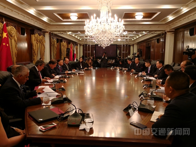 在巴期間,李小鵬還分別赴中國企業(yè)正在建設(shè)的阿瑪多爾郵輪碼頭和科隆PCCP集裝箱碼頭項目現(xiàn)場調(diào)研;在參觀巴拿馬運河觀花船閘期間,李小鵬與中遠(yuǎn)海運“奧克蘭”輪船長通話,慰問全體船員,并為“奧克蘭”輪通過船閘操作船閘控制按鈕。此外,李小鵬還與中遠(yuǎn)海運、中國建筑集團(tuán)有限公司、中國鐵路工程集團(tuán)有限公司、中國鐵道建筑有限公司、中國交通建設(shè)集團(tuán)有限公司、中國船級社等中國在巴交通運輸、基建企業(yè)代表和部屬單位舉行座談,了解企業(yè)在巴投資和經(jīng)營情況并聽取了他們對兩國交通運輸主管部門的意見和建議。