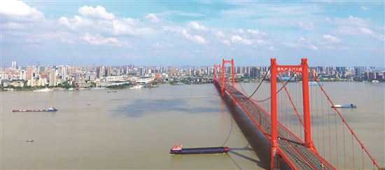 武漢首座8車道跨江橋梁——鸚鵡洲長江大橋。